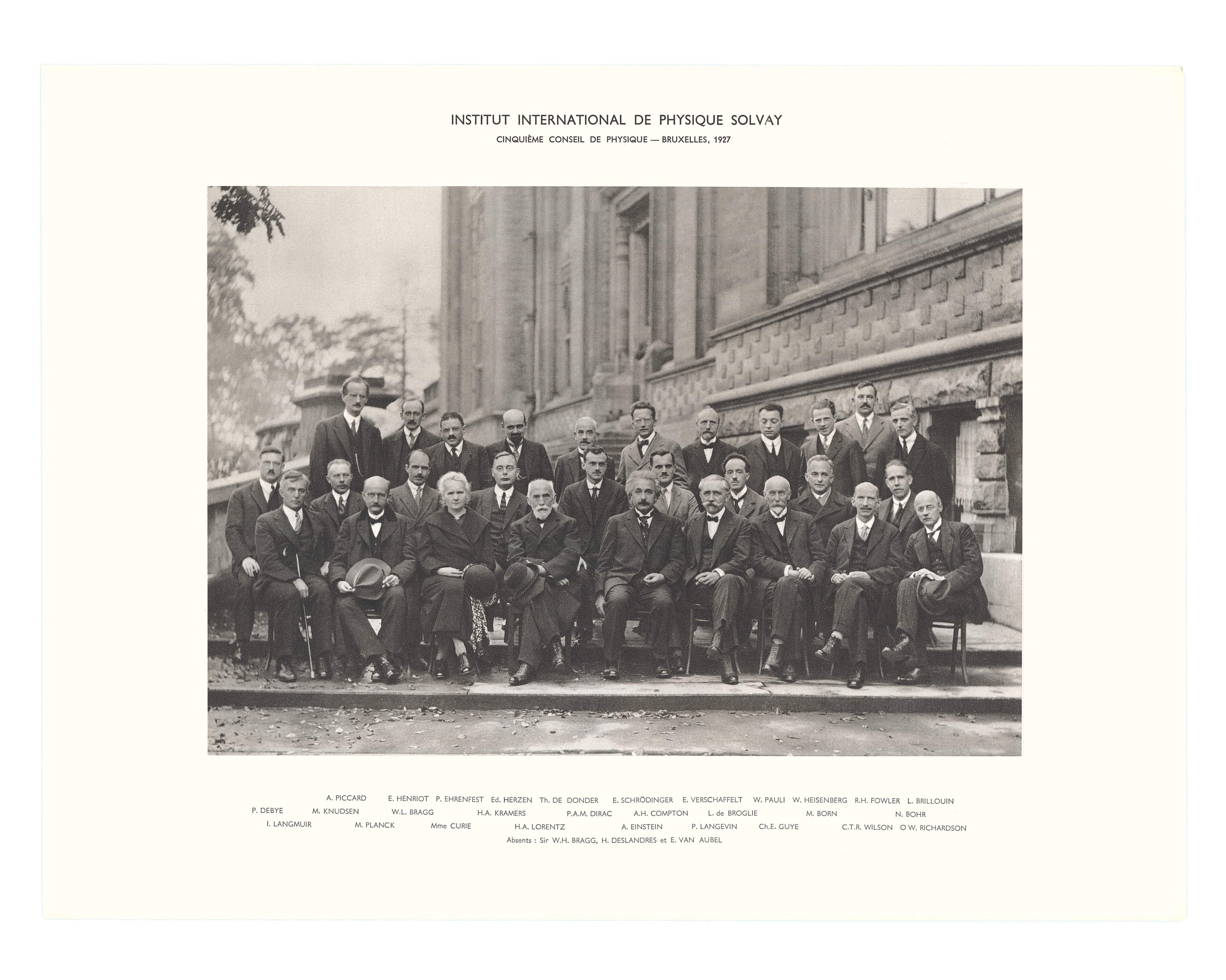 Fifth conference participants, 1927. Institut International de Physique Solvay in Leopold Park: