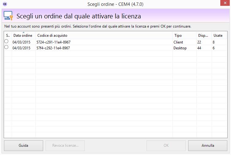 Selezionare la Chiave della Licenza acquistata e attendere il "Messaggio di Conferma attivazione":