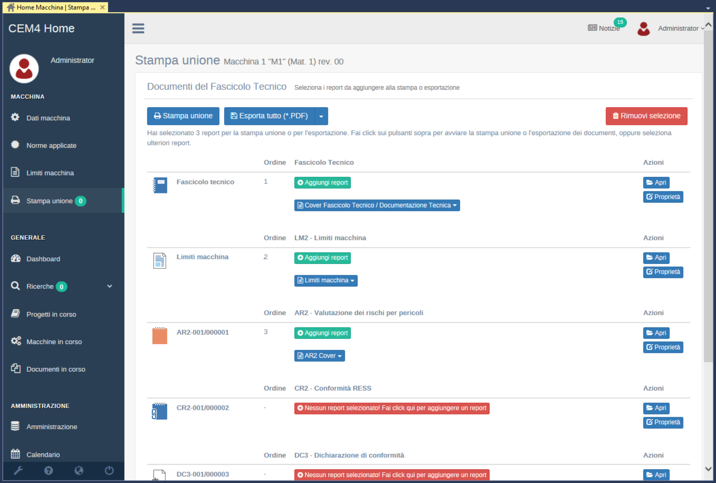 Da questa versione è possibile effettuare stampe/esportazioni dei report selezionati con un singola operazione (stampa/esportazione unione).