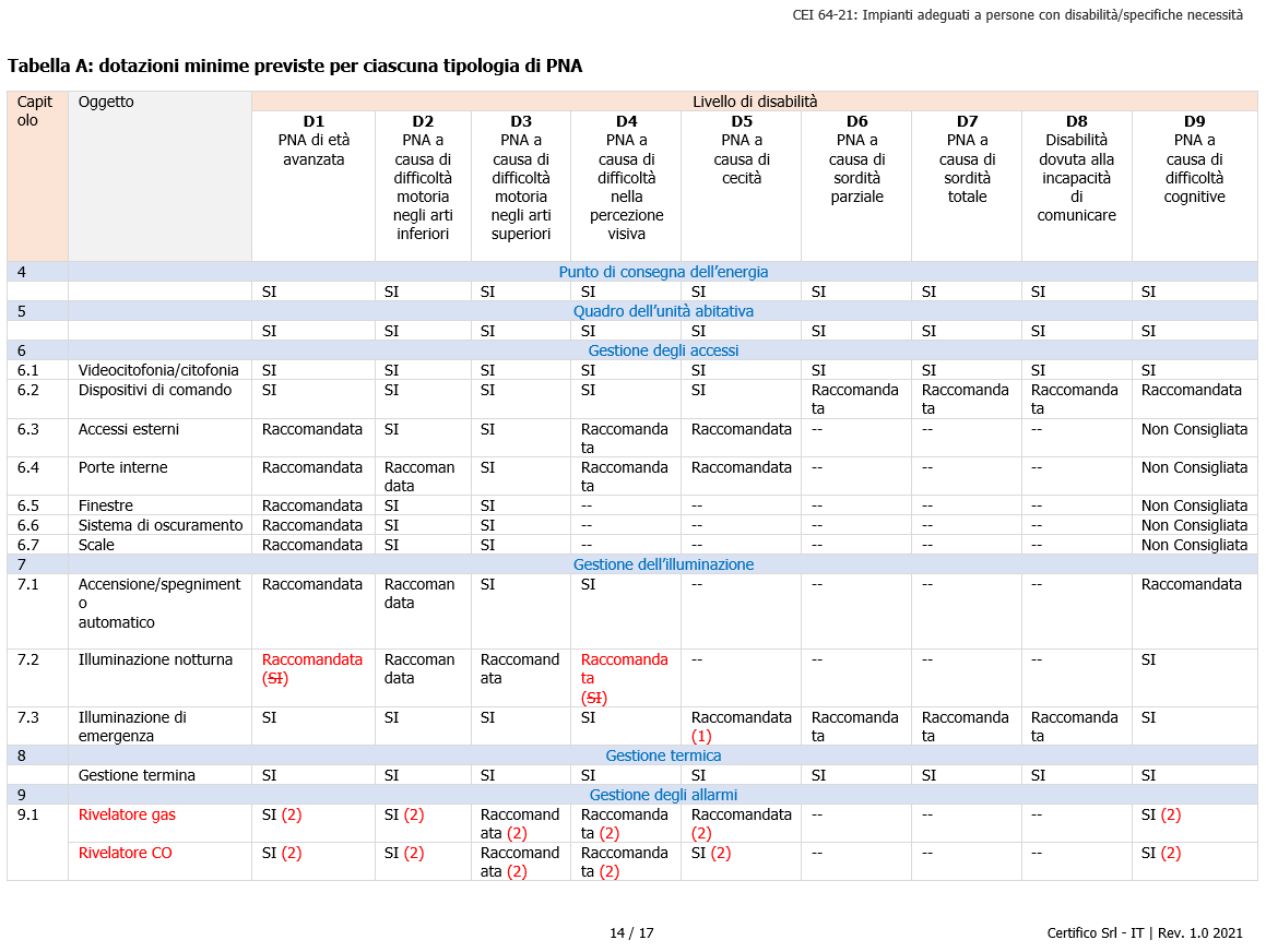 CEI 64-21 “Ambienti residenziali - Impianti adeguati all’utilizzo da parte di persone con disabilità o specifiche necessità“.