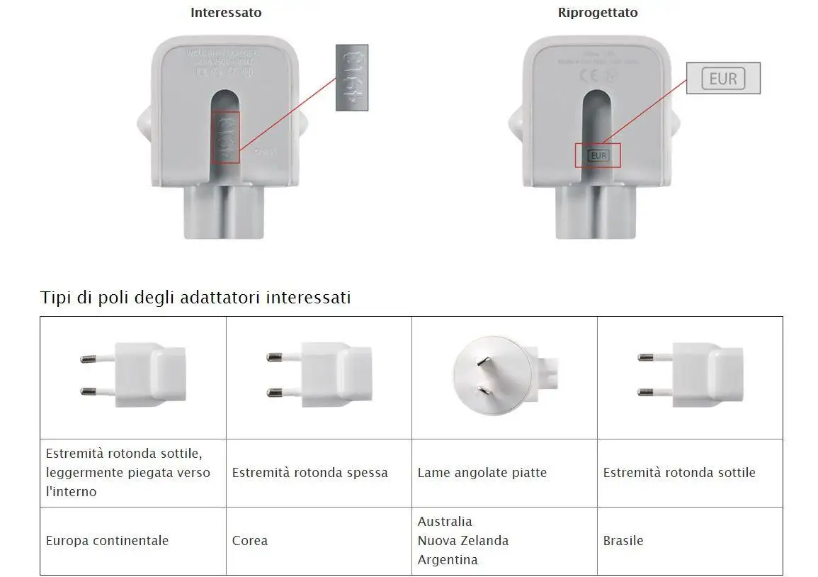 Il prodotto “adattatore”, di marca APPLE, è stato volontariamente ritirato dal mercato perché non conforme alla Direttiva 2006/95/CE Bassa Tensione.
