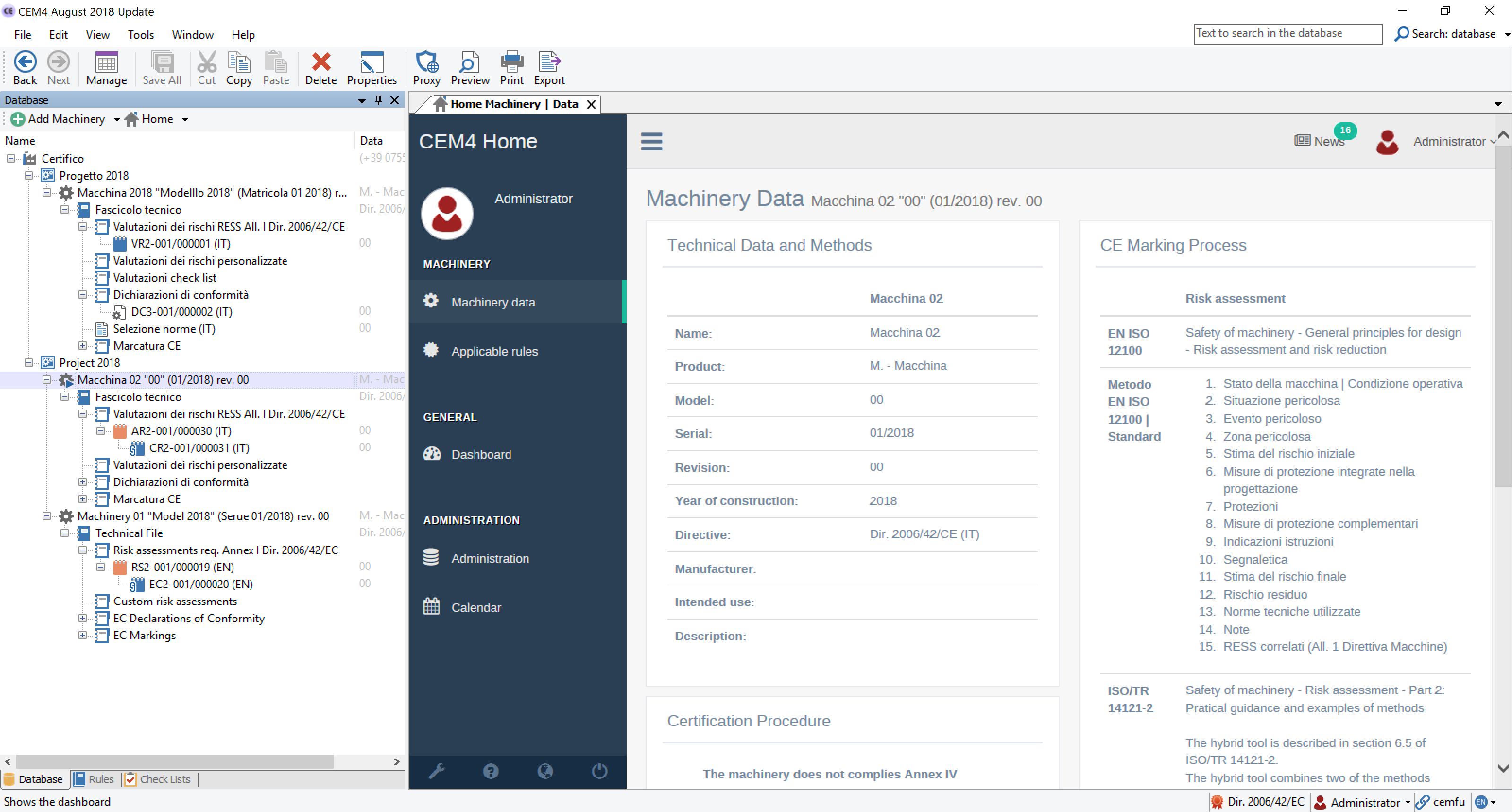 CEM4 "miniature 6", 6a versione 2018, modifica, in particolare, la veste grafica per la "Home macchina" (Vedi), relazionata al nuovo "Report dettagli macchina e metodi", stampabile dalla stessa, esempi: (Download EN) (Download IT)