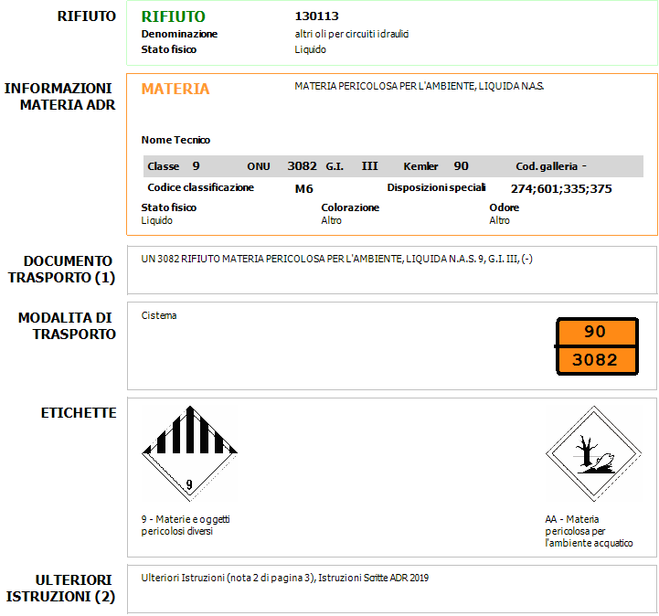 Con un semplice comando è possibile estrarre la dicitura da inserire nel documento di trasporto per materie/rifiuti in regime ADR.