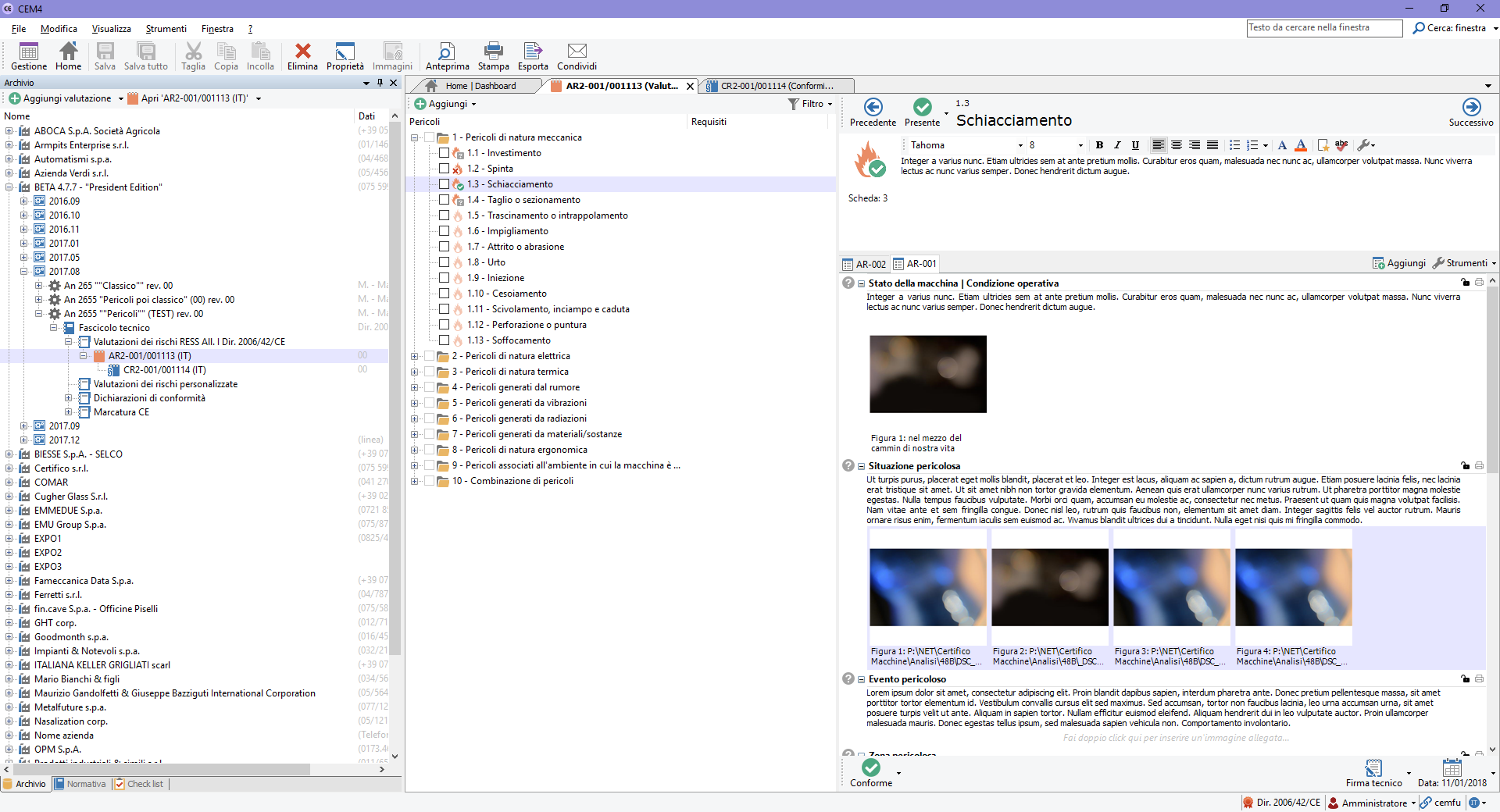 CEM4 "miniature" è la nuova versione 2018 del software, nella quale è sviluppata una interfaccia grafica di lavoro con gestione evoluta delle immagini, in particolare è possibile inserire e gestire immagini a video sempre in evidenza nelle schermate di compilazione delle VR ed in altre posizioni di CEM4 tale da avere immediata evidenza del contesto di lavoro.