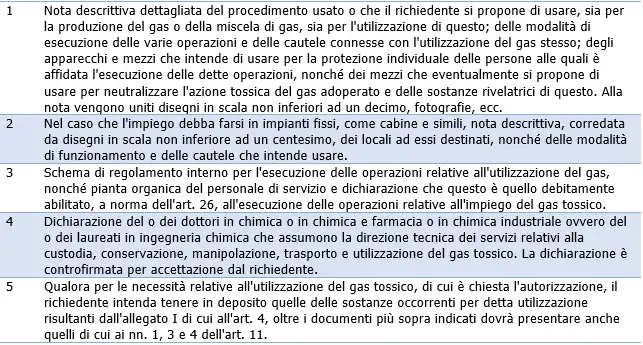 3.1.2 Elenco gas tossici - autorizzazione all’utilizzazione