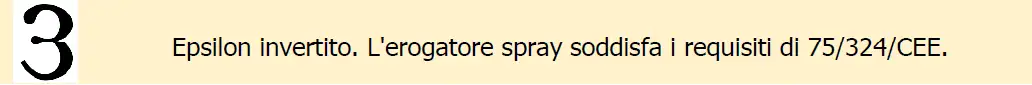 Fatto salvo il regolamento (CE) n. 1272/2008 del Parlamento europeo e del Consiglio, su ogni generatore aerosol o su una etichetta ad esso applicata, nel caso in cui non sia possibile apporre diciture particolari sul generatore aerosol a causa delle sue piccole dimensioni (capacità massima pari od inferiore a 150 ml) si devono apporre in lingua italiana, in caratteri visibili, leggibili ed indelebili, le seguenti indicazioni):