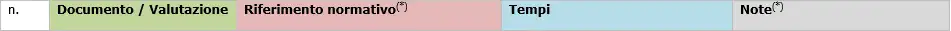 Nella colonna 2 è riportato il “Riferimento normativo”, nella colonna 3 i “Tempi”, dove applicabile, chiude la tabella la colonna 4 "note".