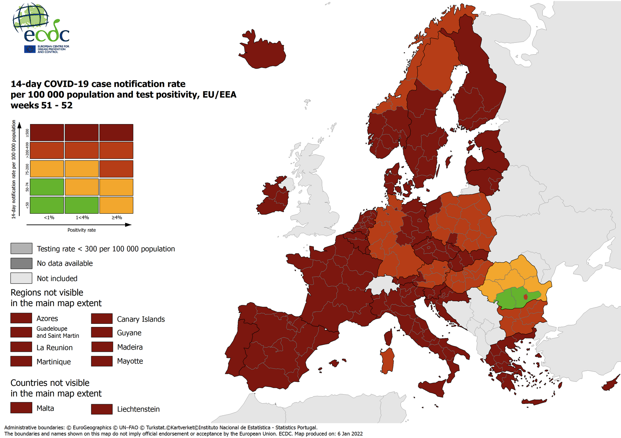 Queste mappe sono pubblicate dall'ECDC ogni giovedì a sostegno della Raccomandazione (UE) 2022/107 del Consiglio del 27 Gennaio 2022 su un approccio coordinato per facilitare la libera circolazione in sicurezza durante la pandemia di COVID-19 e che sostituisce la raccomandazione (UE) 2020/1475