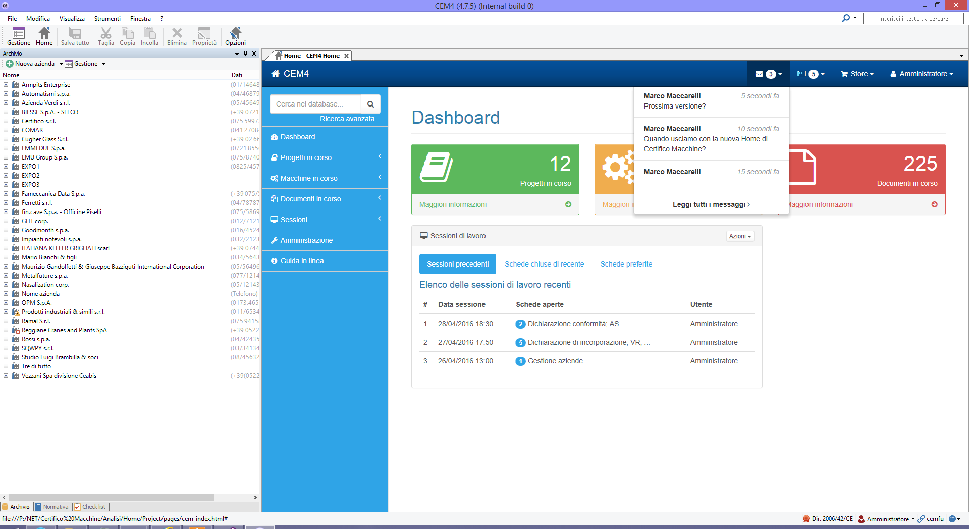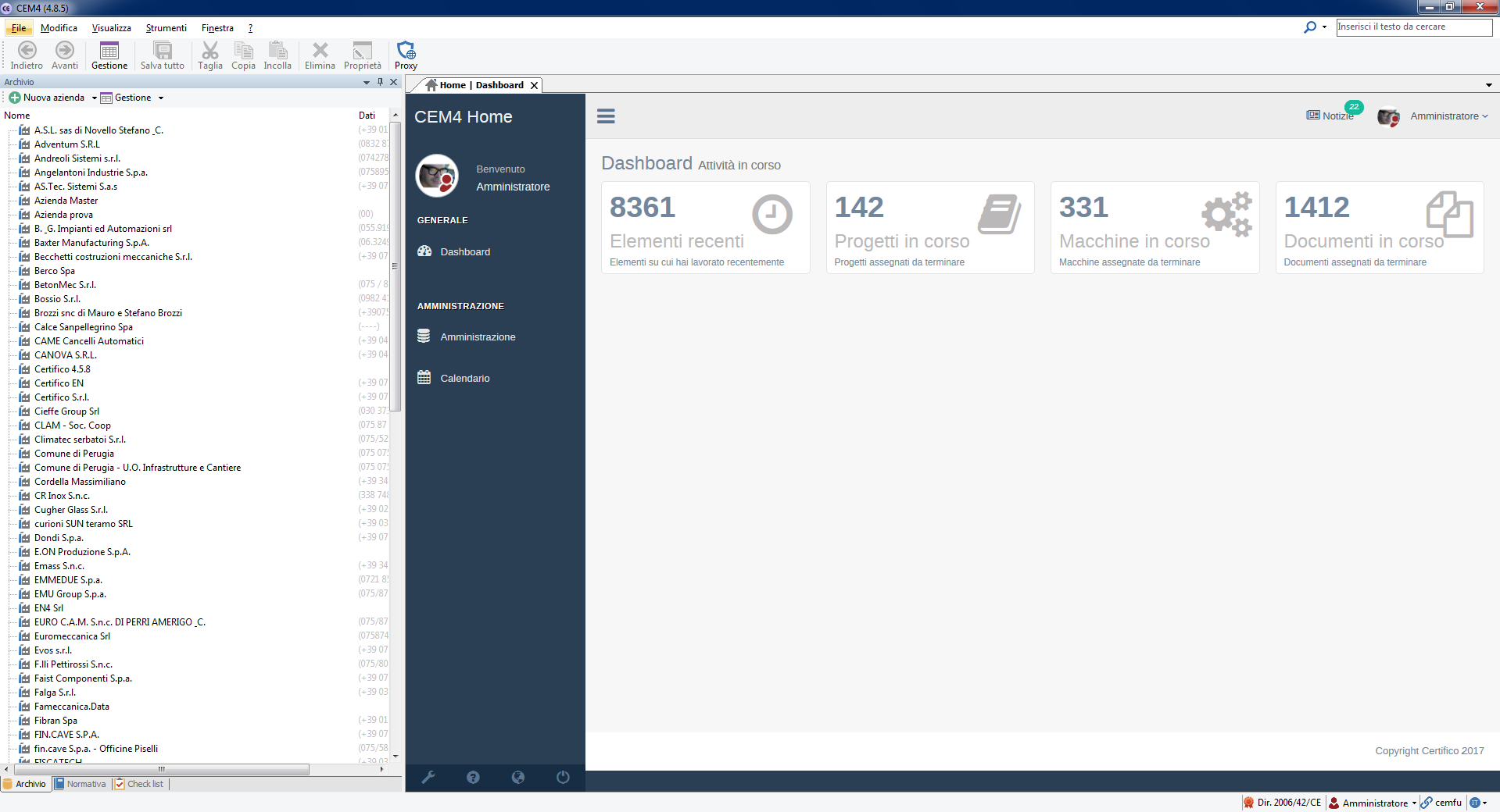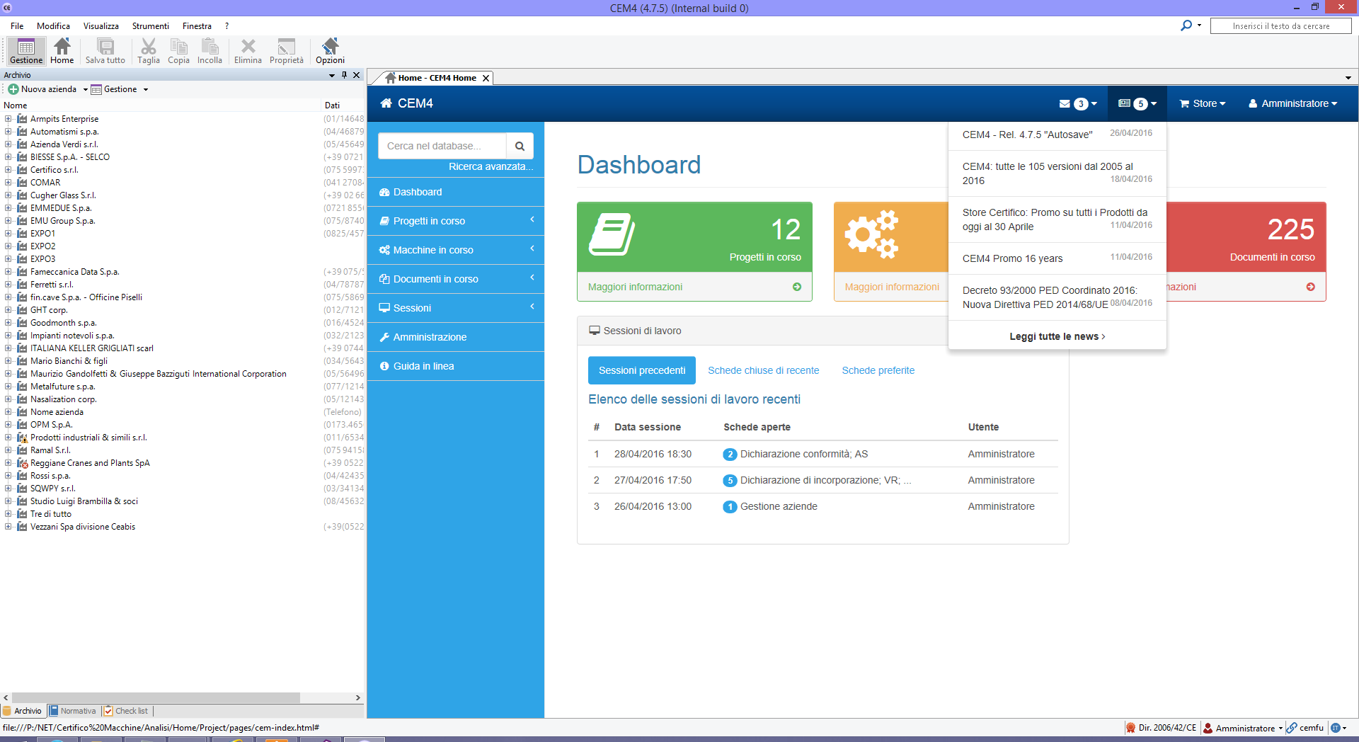 CEM4: il nuovo design e la nuova Home(*) 2017, struttura a Dashboard: è possibile avere una panoramica dei lavori svolti con accesso veloce agli ultimi, un nuovo motore di ricerca, notizie e altro.