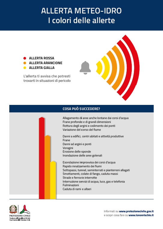 Con l'obiettivo di dare una rappresentazione sintetica alla tabella è stata realizzata l'infografica "Allerta meteo-idro - I colori delle allerte" nell’ambito del confronto che il Dipartimento ha avviato con le Regioni e le Province Autonome in merito all'omogeneizzazione a scala nazionale degli strumenti e degli standard operativi relativi alle attività di allertamento, pianificazione e gestione delle emergenze.
