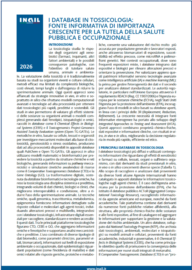 I database in tossicologia: fonte informativa di importanza crescente per la tutela della salute pubblica e occupazionale