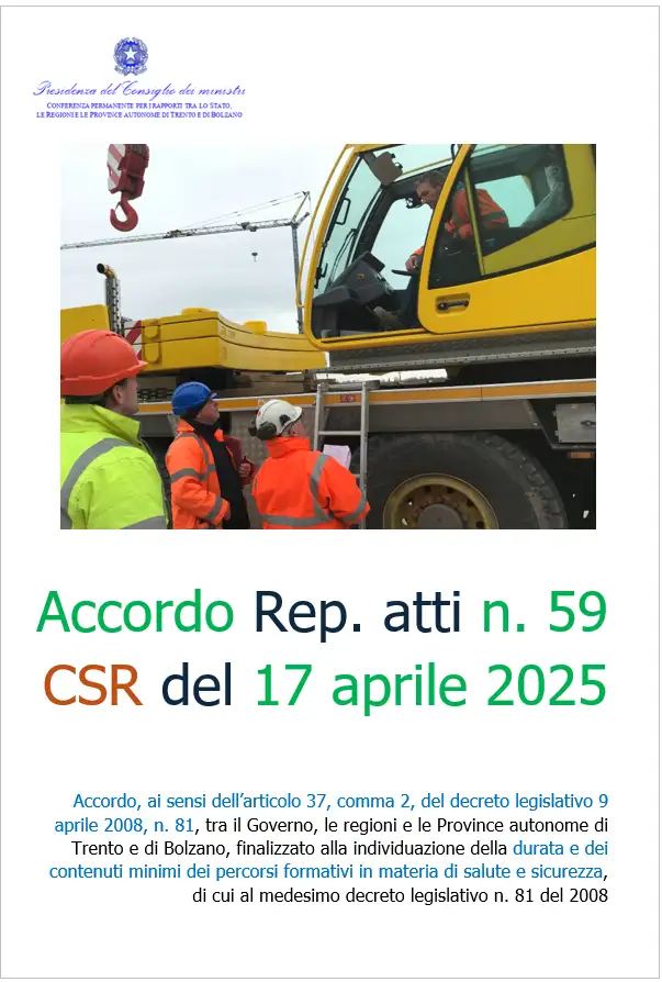 Accordo, ai sensi dell’articolo 37, comma 2, del decreto legislativo 9 aprile 2008, n. 81, tra il Governo, le regioni e le province autonome di Trento e di Bolzano, finalizzato alla individuazione della durata e dei contenuti minimi dei percorsi formativi in materia di salute e sicurezza, di cui al medesimo decreto legislativo n. 81 del 2008.